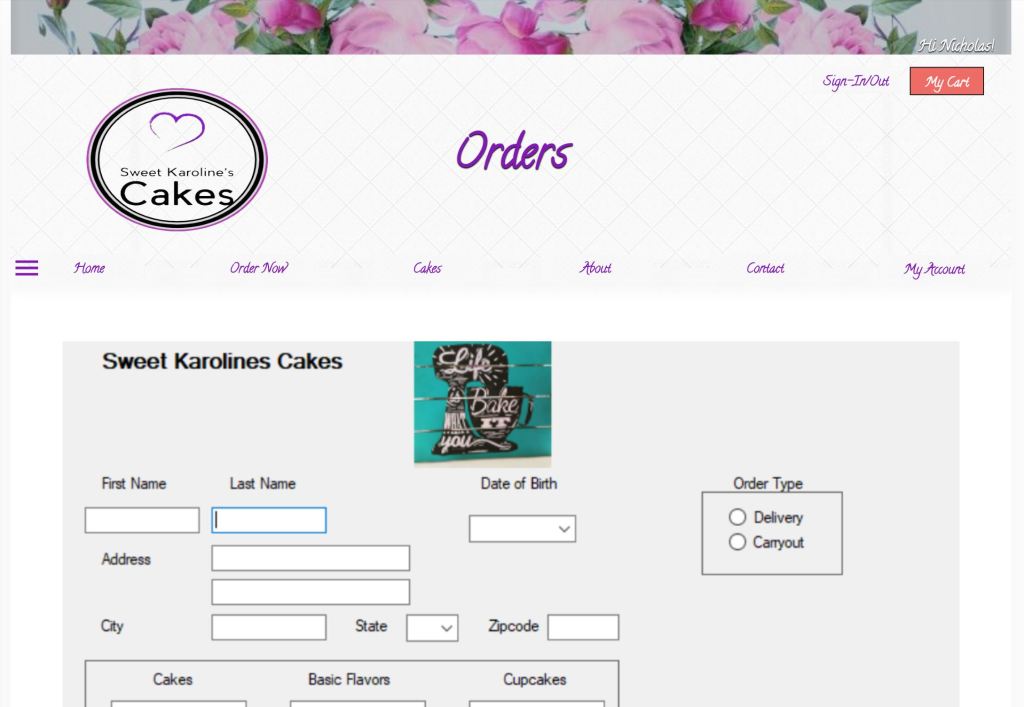 Using UXPin, myself and my classmates created a web-page that displayed different types of cakes, order options, and more.